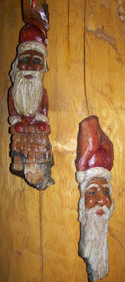 slivers of wood and let the face or house “emerge” from the bark. As I carve
